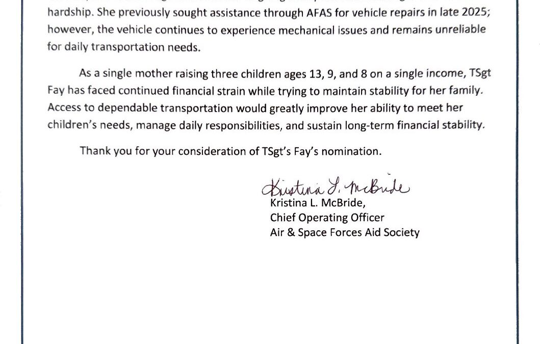 Recycled Rides Nomination – AFAS – TSgt Paola Fay